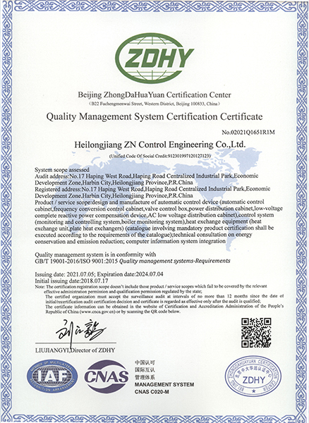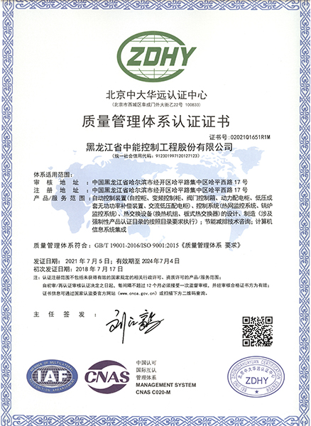 • 2001年通過(guò)了ISO9001國(guó)際質(zhì)量管理體系認(rèn)證,獲得DHE100系列熱交換機(jī)組哈爾濱市科技進(jìn)步獎(jiǎng)